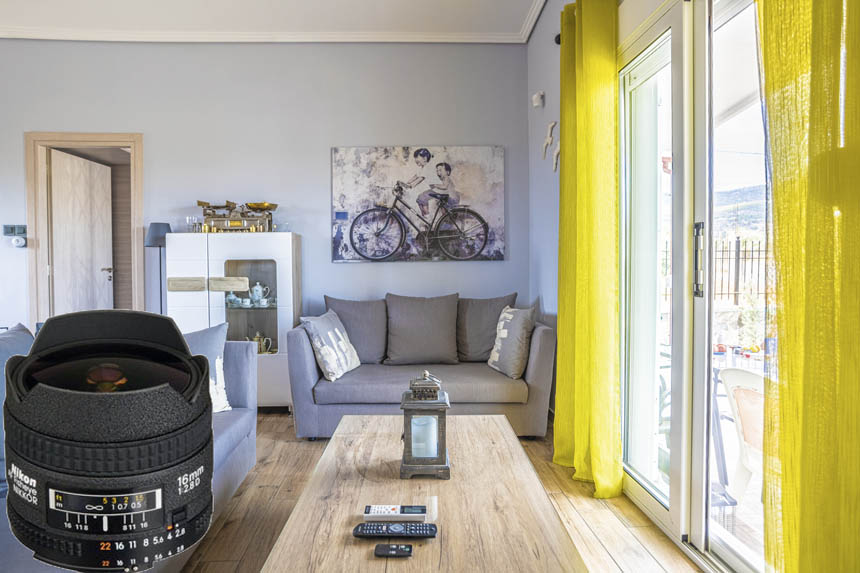 Στην Αθήνα και στις άλλες πόλεις της Ελλάδας τα σπίτια συνήθως δεν είναι μεγάλα. Κατά συνέπεια δεν έχουμε περιθώριο για πολλές κινήσεις, οπότε ένας 16mm είναι σχεδόν αναγκαίος σε τέτοιες περιπτώσεις καθώς προσφέρει ευρύτερη οπτική γωνία. Σε αυτές λοιπόν τις περιπτώσεις πρέπει να μετακινούμε αντικείμενα/έπιπλα στο χώρο ώστε να φωτογραφίσουμε πιο άνετα. Αν δεν δείχνουν ωραία στο κάδρο πρέπει να αφαιρεθούν ή να αλλάξουν θέση. Σε κάθε περίπτωση το τελικό αποτέλεσμα πρέπει να είναι κολακευτικό και γι’ αυτό είναι απαραίτητες κάποιες παρεμβάσεις. Δεν χρειάζεται να συμπεριλαμβάνονται στο κάδρο όλα τα αντικείμενα που υπάρχουν στα δωμάτια. Ό,τι θεωρούμε περιττό το αφαιρούμε για πιο λιτό αποτέλεσμα, π.χ. σαπούνια, σφουγγάρια από τον νεροχύτη, καλαθάκι του μπάνιου, και γενικά αχρείαστες λεπτομέρειες που παράγουν οπτικό θόρυβο και δεν χαρίζουν στην τελική εικόνα.